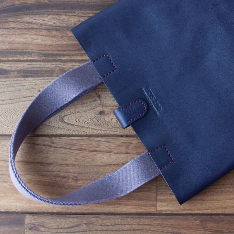 イタリア製のタンニンなめし革を使い手縫いで作った、小型でスリムなトートバッグです。