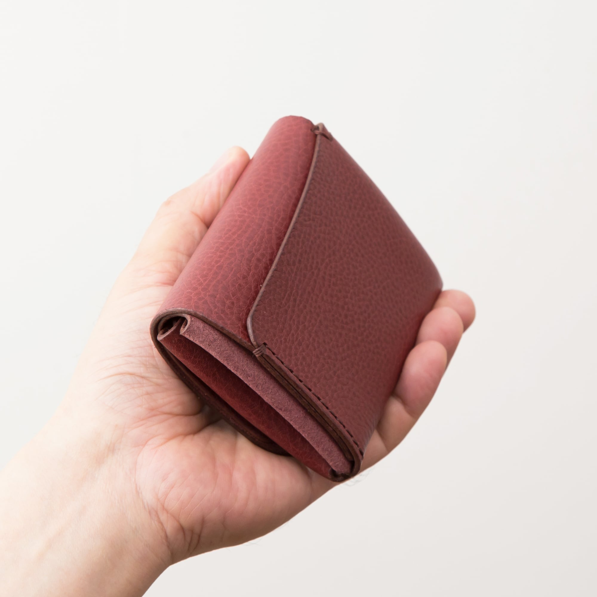 イタリア製のタンニンなめし革を使い、手縫いで作った二つ折りタイプのお財布です。