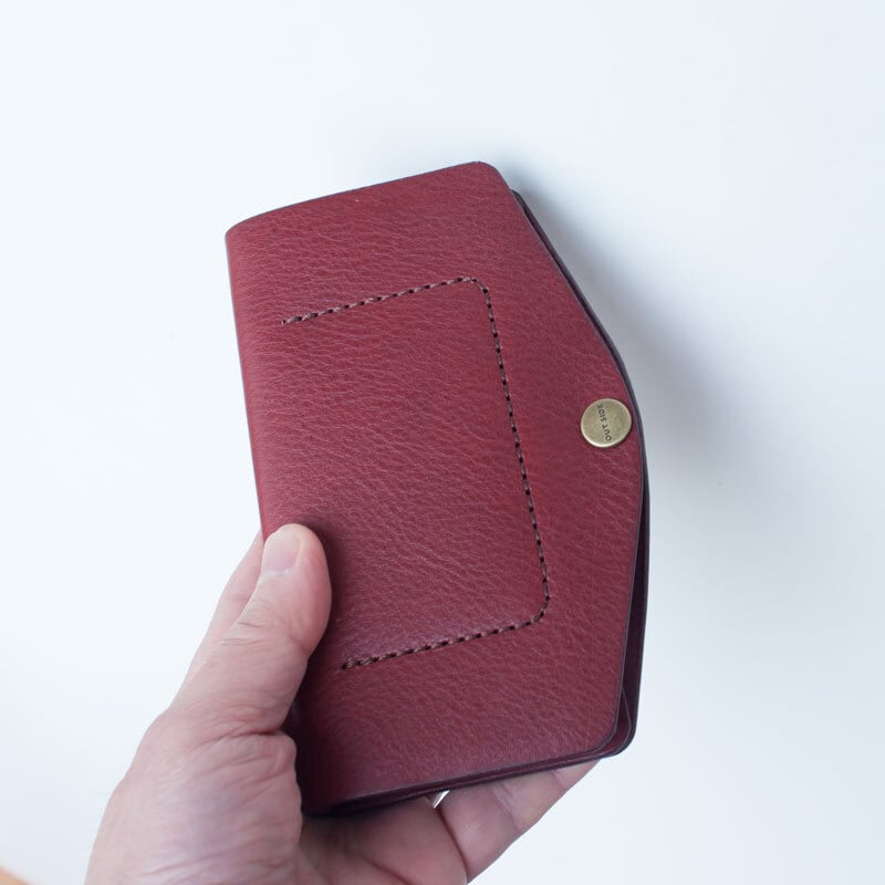 裏地がなく、革の断面は裏側と同じ処理剤で磨いたシンプルなデザインです。